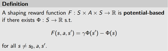 中文可以翻译为基于势能的奖励塑造,首先给一个定义