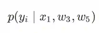 当我们给一个新的样本进行分类,假设该样本的特征为 x_1、w_3、w_5。那么对于每一个类别 y_i,我们需要计算: