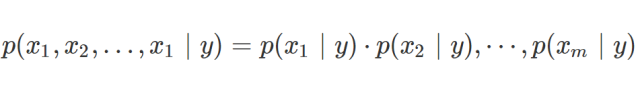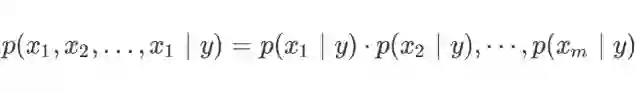 这个式子非常难以计算,因为它涉及到估计所有特征可能的组合。因此,我们可以根据朴素贝叶斯假设放宽各特征的条件。朴素贝叶斯定理假设:「给定一个类别,每一个特征都与其它特征条件独立」。该假设可以表示为 p(x_i | y, x_j)=p(x_i | y),其中 i 不等于 j。在给定类别 y 的条件下,概率 p(x_i∣y) 是相互独立的,因此也就能如下简单地乘积表示联合分布: