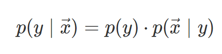 NB 分类器是基于贝叶斯定理的,若我们将贝叶斯定理代入到上式,那么条件概率可以写为: