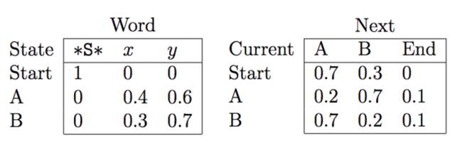 HMM 中的转移概率和发射概率。(图源:维吉尼亚大学 CS6501 课程)