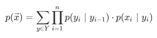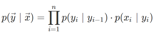 前面展示的模型预测了在给定观察样本下最可能出现的类别。要想预测观察序列 x=(x_1, …, x_n) 对应的类别序列 y=(y_1, …, y_n),可以使用多个朴素贝叶斯模型的累乘而构建一个序列模型: