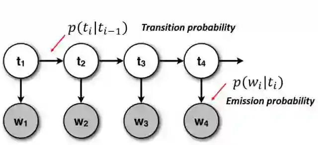 每个状态仅依赖于前一个状态,即每个状态 t_i 都独立于前面所有状态 t_1, t_2, …, t_i−2,除了紧挨着的前一个状态 t_i-1。