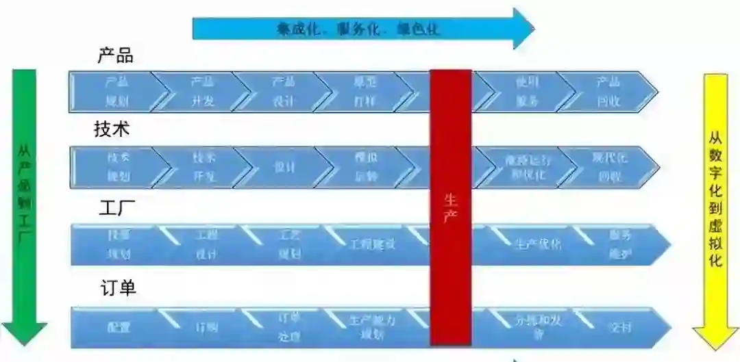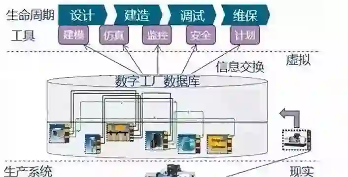建模、模拟和预测方法和工具对物理工厂生命周期各个阶段(例如:选址和供应链网络规划、概念设计、技术选择和流程规划、资源设计和组件选择、布局规划、实施、建造、运营或执行、维护、废弃)的制造活动给予战略上支持,这些方法和工具经过整合,形成工厂及其生产设备的整体、统一的虚拟模型。