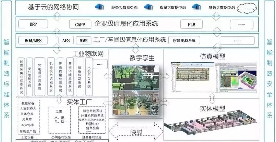 目前新建工厂的建筑设计、物流设计、工艺设计、信息化设计、自动化设备的设计与控制以相对独立、自成一体模式为主。智能工厂今后的主流建设模式将是在工厂信息模型PIM、信息系统建模UML —Unified Modeling Language(或工程系统建模SysML—Systems Modeling Language)语言、自动化控制结构的基础上,以数字量驱动为核心,通过交互通信和传感识别手段实现制造系统中人-设备-信息的高度集成、数字量与物理系统实现高度融合。工业大数据和工业物联网是制造系统各要素之间建立联系的基础环境。