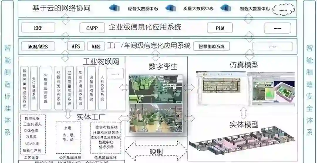 (7)智能制造标准体系和安全体系。形成企业智能制造的标准体系和安全生产体系,用于保障工厂的智能制造系统运行。