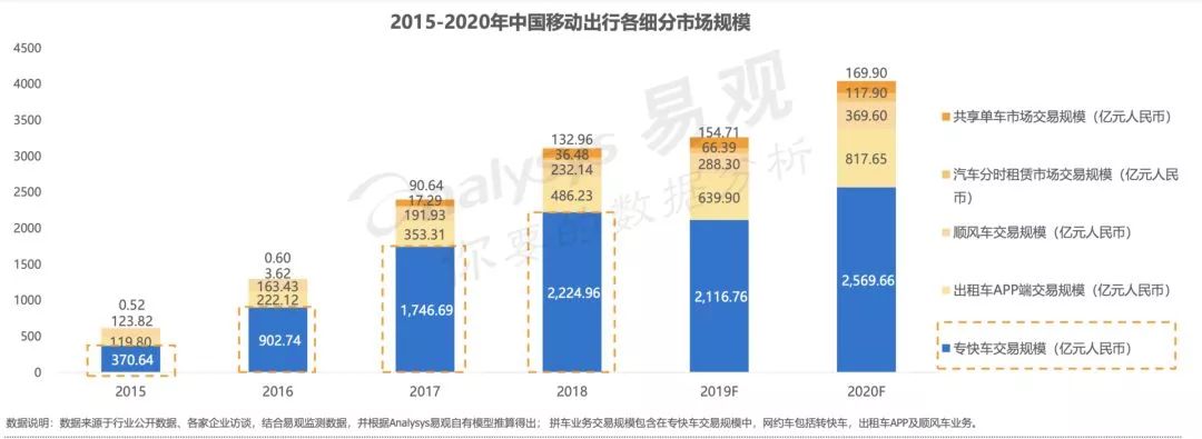 据易观《2019中国网约车市场分析报告》显示,2018年顺风车交易额为232亿,相较2017年的192亿,涨幅为20.8%,而预计顺风车的交易额在2019年、2020年分别为288亿和370亿,增长迅速。