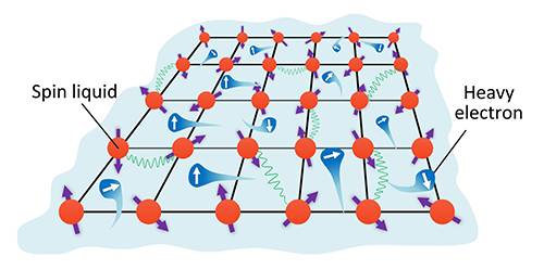 图1:重费米子晶格上由局域自旋液体和巡游重电子形成的二流体行为示意图