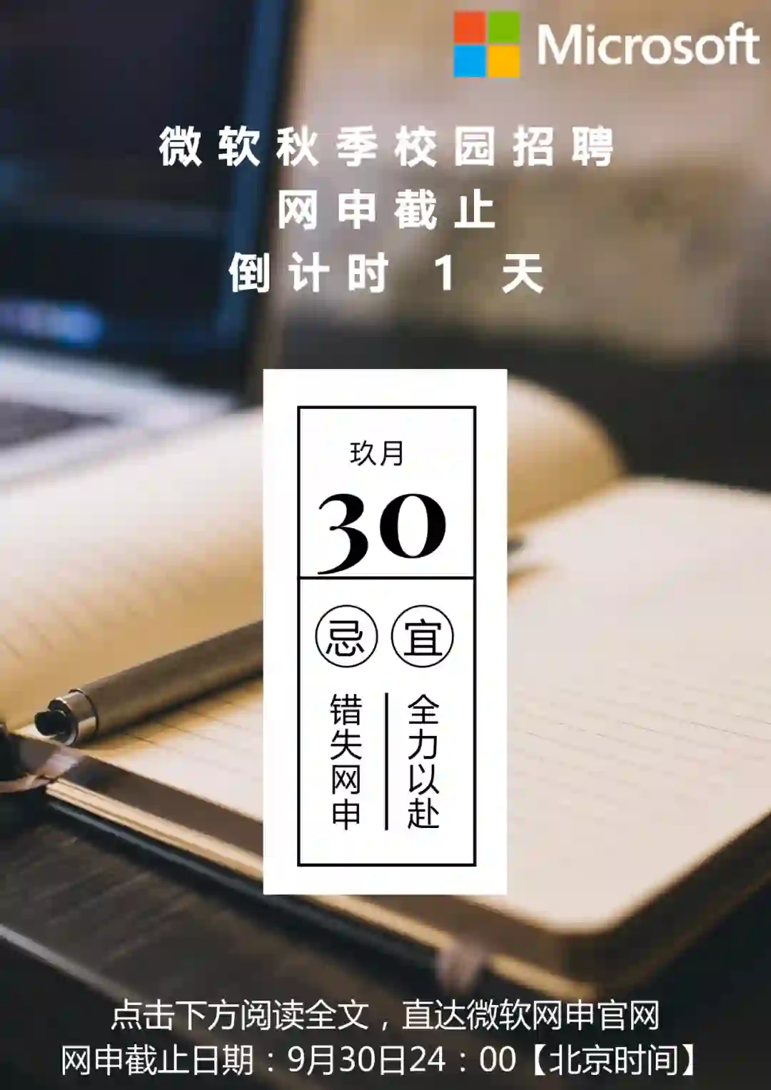 微软秋招网申倒计时3天!