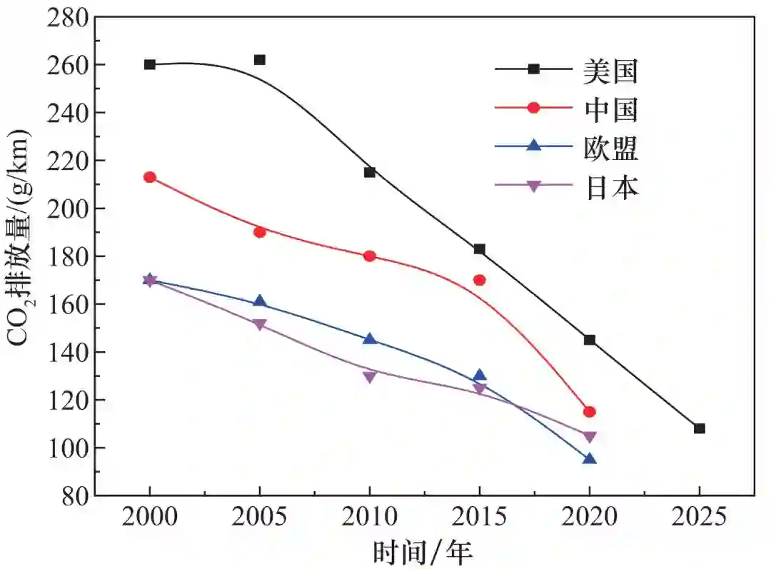 另外,随着世界范围内能源、环境问题的加剧,发展内燃机节能和降低 CO2 排放是汽车内燃机的迫切任务。图 1 为世界主要国家和地区降低 CO2 排放时间表,我国乘用车的任务是每年降低 5 % 的 CO2 排放量。