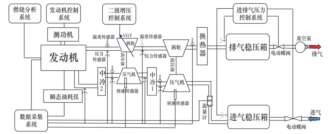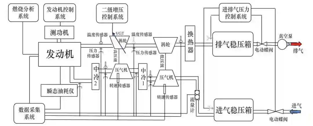 图 2 二级可调增压柴油机高海拔试验系统简图