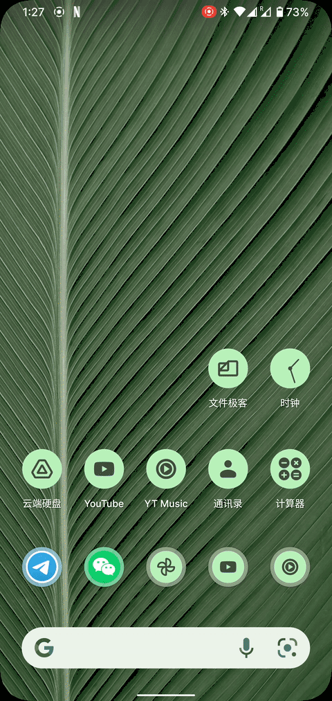 但「让桌面图标也能跟随壁纸变换主题风格」是一件很酷的事,此前 Google 在 Android 12 中为自家应用保留的带主题的应用图标(themed icons,以下简称「主题图标」)特性,在 Android 13 中终于成为了一项主打功能。