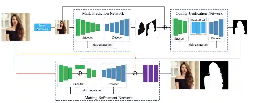MRN 网络输入原图和经过 QUN 规范化后的粗 mask,估计精确的 alpha matte,使用精确标注数据训练。