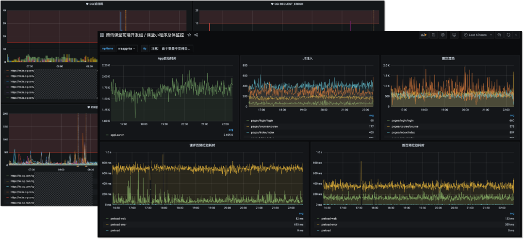 在监控告警方面,通过小程序的 API 再结合收拢的上报 SDK,可以让统计力度更细,而且可视化可定制。