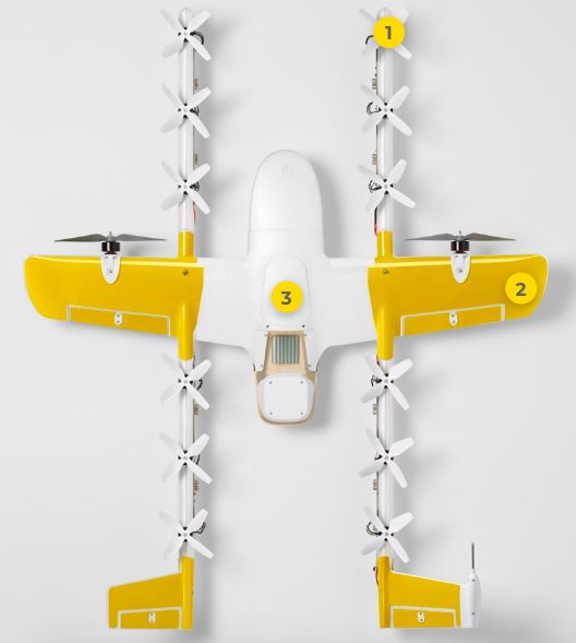 该款外形奇特的无人机通过悬停螺旋桨降低噪音。具体到基本递送方式,其实并没有太大改变。在用户从商家订购商品(食物、饮料、非处方药物或其他物品),Wing软件收到订单信息并提取到货物后,Wing软件会自动计算从配送点到收货点的路线,并将飞行计划上传到无人机控制平台;在配送货物时,无人机会在配送点上方进入悬停状态并下降至距地面7米的高度,通过绳索将包裹释放到地面,从而完成配送。