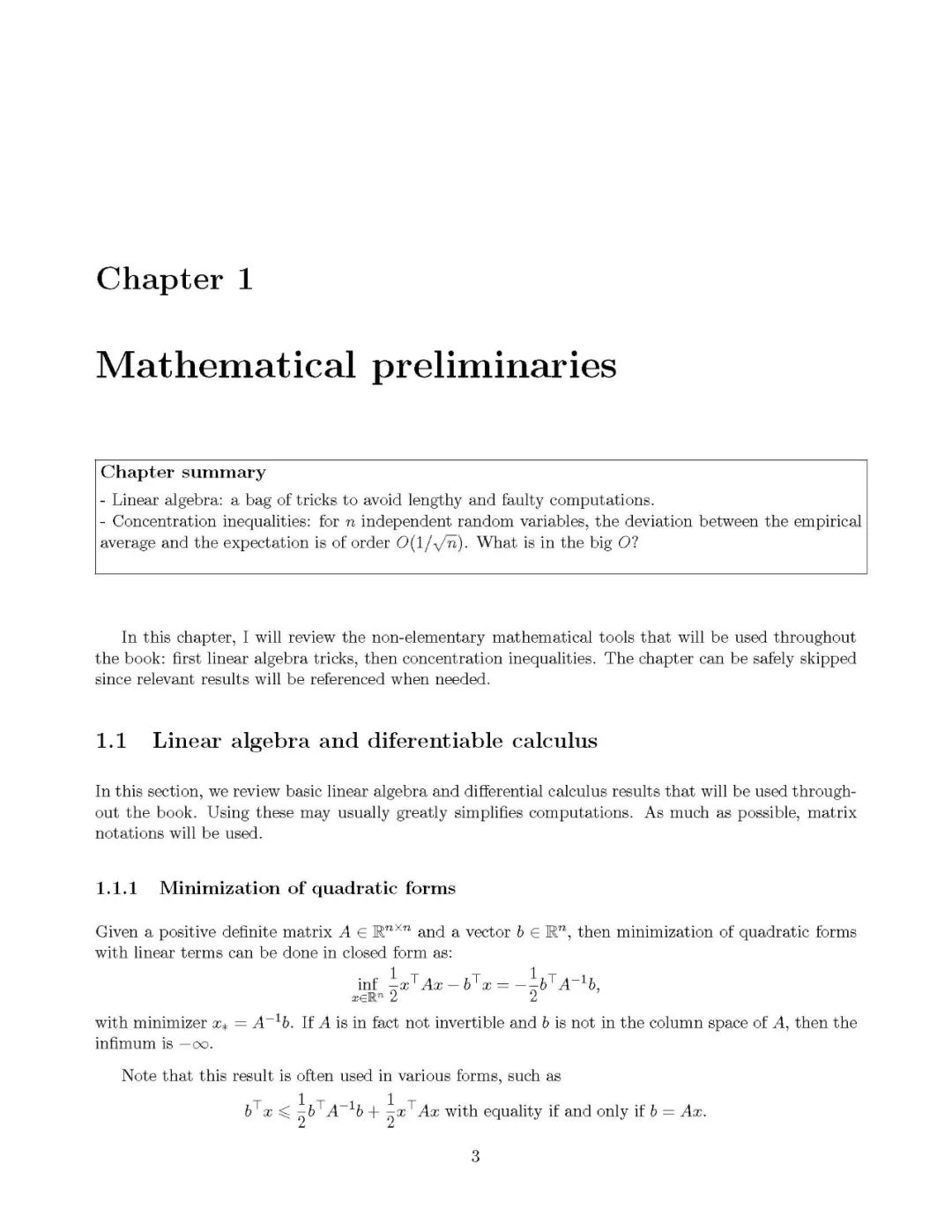 本课程(以及本教材)的目标是为最广泛使用的学习架构展示学习理论的旧成果和新成果。本课程面向的是理论导向型的学生,以及那些想要获得基本数学理解的学生,这些学生在机器学习和相关领域中使用了大量的学习方法,如计算机视觉或自然语言处理。为了证明从第一性原理得出的许多结果,将作出特别的努力,同时使阐明尽可能简单。这将自然导致选择的关键结果,在简单但相关的实例中展示学习理论的重要概念。在没有证明的情况下,也将给出一些一般的结果。当然,第一性原理的概念是主观的,我将假定有良好的线性代数、概率论和微分的知识。