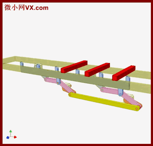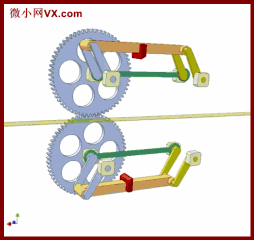 黄色杆和橙色杆连接形成一个平行四边形机制。