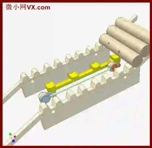此连杆的作用是在切断运动中给刀一个大小与连接板速度相等的速度。