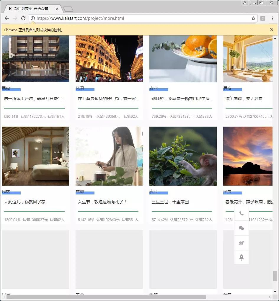 这次的目标是爬一个众筹网站的所有项目,项目列表页如下:https://www.kaistart.com/project/more.html。打开后进行分析,页面显示出10个项目: