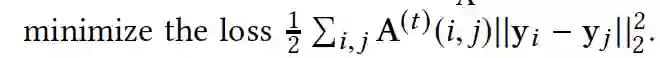 目标是将相似性高的两个节点,映射到低维空间后依然保持距离相近,其损失函数定义为: