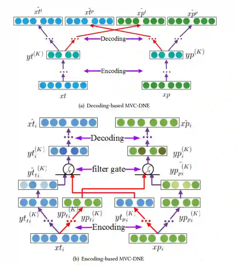 其中一路是该节点的邻居结构,一路是该节点的属性数据。两路数据分别使用autoencoder进行学习,但在学习过程中会将两路数据在中间过程中进行合并,从而达到作者所说的节点和其属性的合并学习。