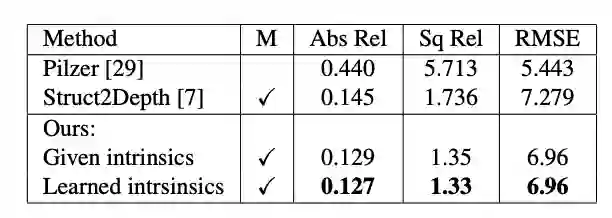 最后,我们首次演示了可以在YouTube视频上学习深度和相机内在预测,这些视频是使用多个不同的相机拍摄的,每个相机的内建都是未知的,而且通常是不同的。