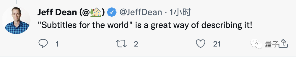 谷歌AI掌门人Jeff Dean把这个功能形容为:给世界加上字幕。