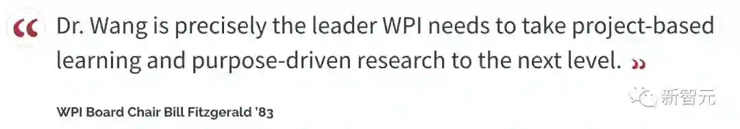 而WPI董事会主席Bill Fitzgerald说:「王博士正是WPI需要的领导者,她会将我们的研究提升到新的水平。」