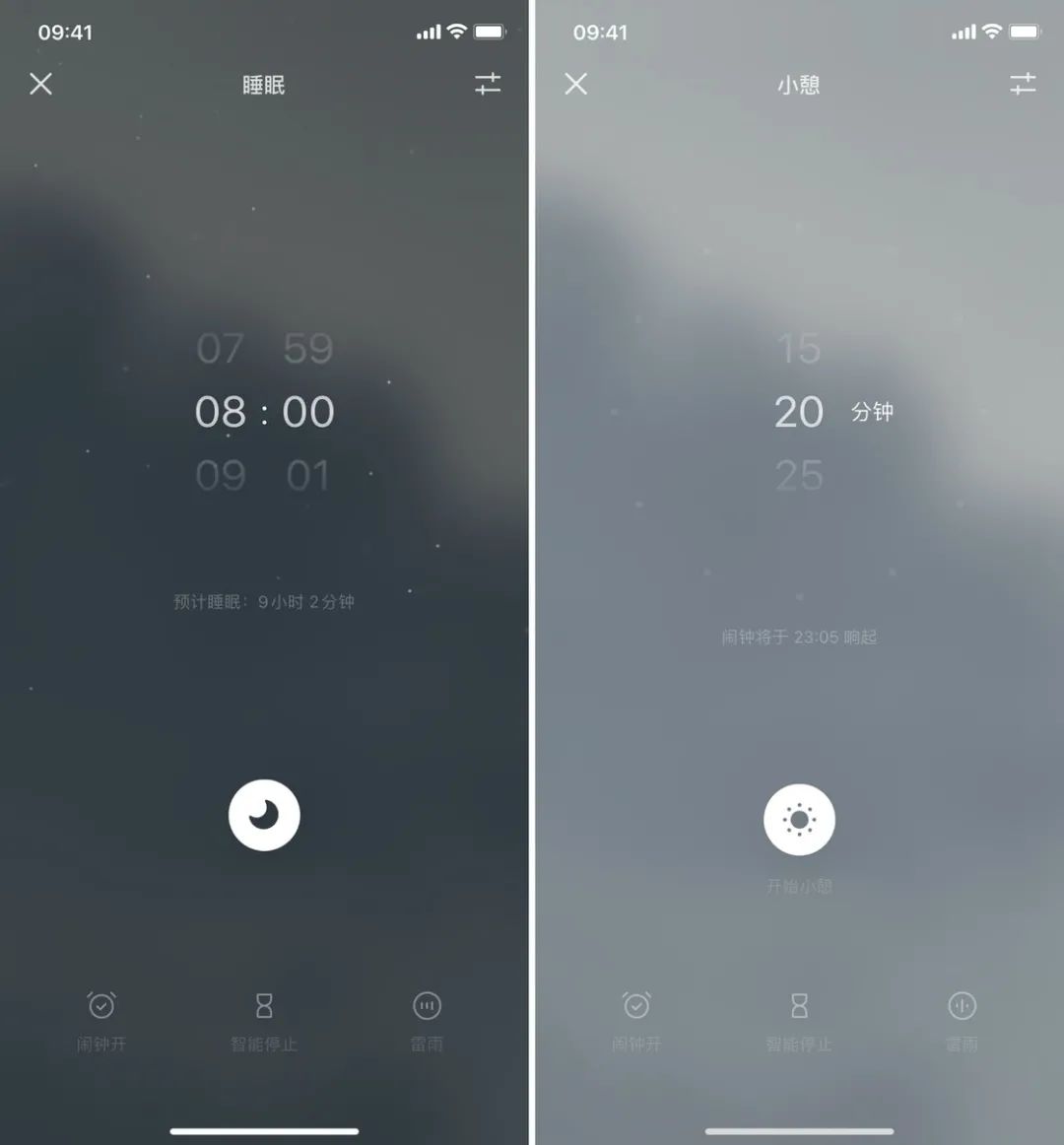经过一上午的忙碌后,好好睡一个午觉能够让你快速恢复精神,应对下午的工作和学习。「小憩」的使用流程与「睡眠」大同小异,你可以设置自己想要休息的时间,应用会显示将于几点唤醒你。设定好时间、戴上耳机,在白噪音中开始午睡吧。