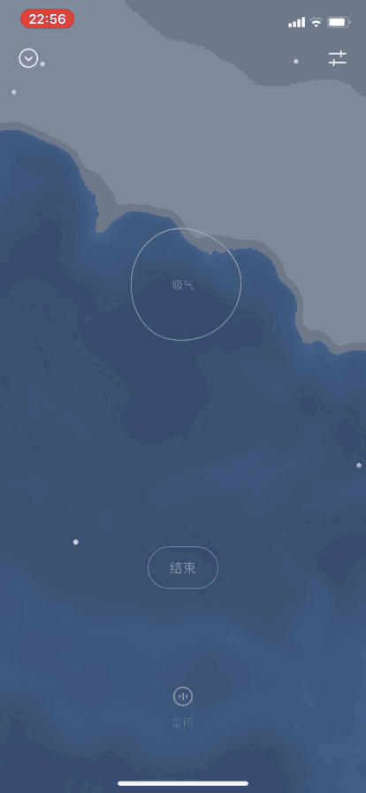 在潮汐里,你只需要选择呼吸练习的时长,随后跟着手机的提示开始调整呼吸即可。在提示音和 Taptic Engine 的振动提示下,即使不看屏幕,你也可以在吸气、屏气和呼气之间自如地切换。背景白噪音的加入,也能在一定程度上帮你放松身心,将注意力集中在「呼吸」这件事上。