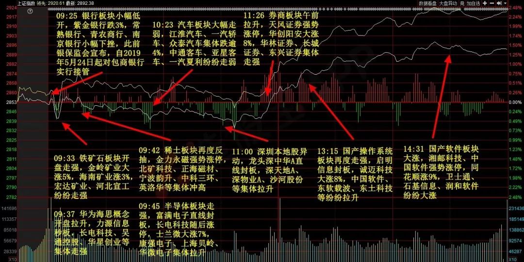 周一(5月27日),两市开盘涨跌不一,早盘经历弱势盘整后,沪指在券商股的突围下上攻,中小创则依托科技股的强势涨声一片。午后市场呈普涨格局,逾百股涨停,仅不足200股飘绿;而早盘跌幅较深的银行和大消费板块也相继翻红。但市场仍未有效放量,短期看仍是减量市场博弈。