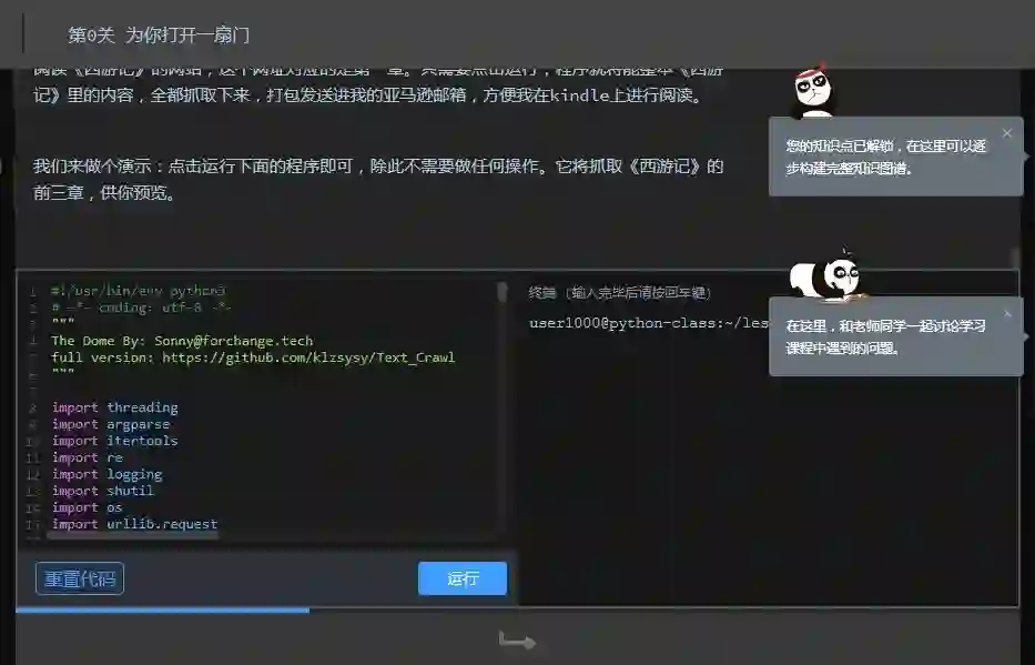 那还有其他选择吗?别说,我最近还真发现了一个!那就是「Python 小课」,课程的主打就是一边学游戏,一边学编程,主要内容就是教你爬虫和一些有趣的功能,带你入门人工智能。