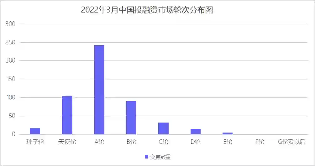 睿兽分析数据显示,2022年3月国内一级市场投融资事件轮次分布最多在泛A轮