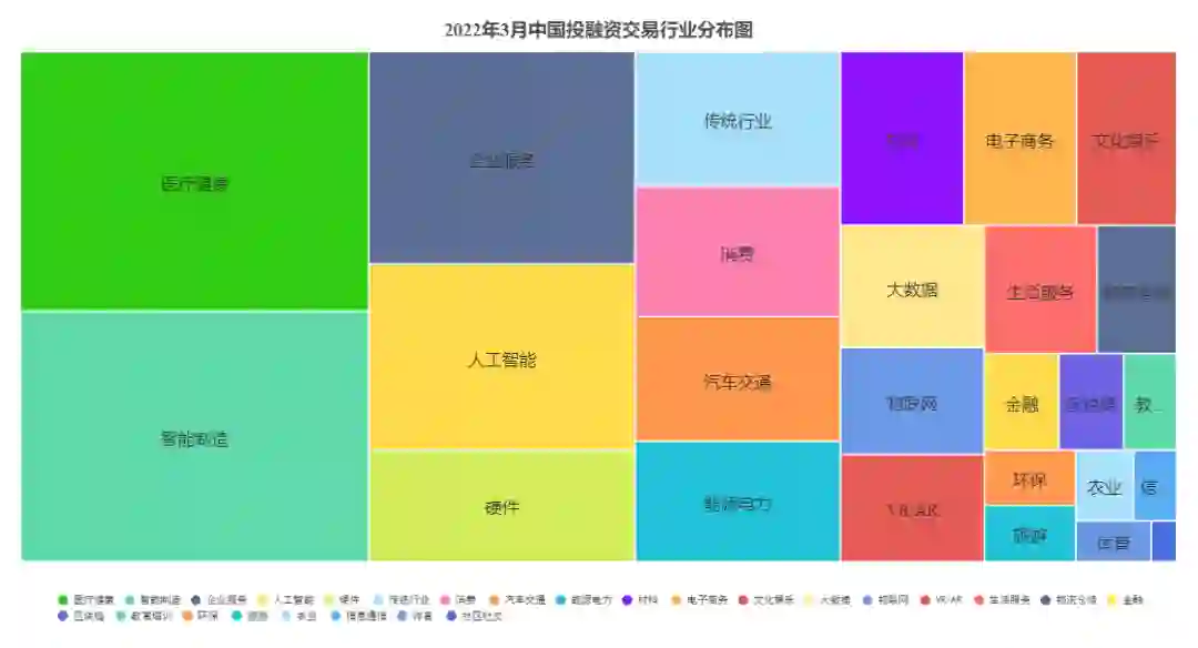 ,较上月相比投资热度不减,投融资交易数量、已披露融资金融均位居首位。智能制造位居第二,再次是企业服务。