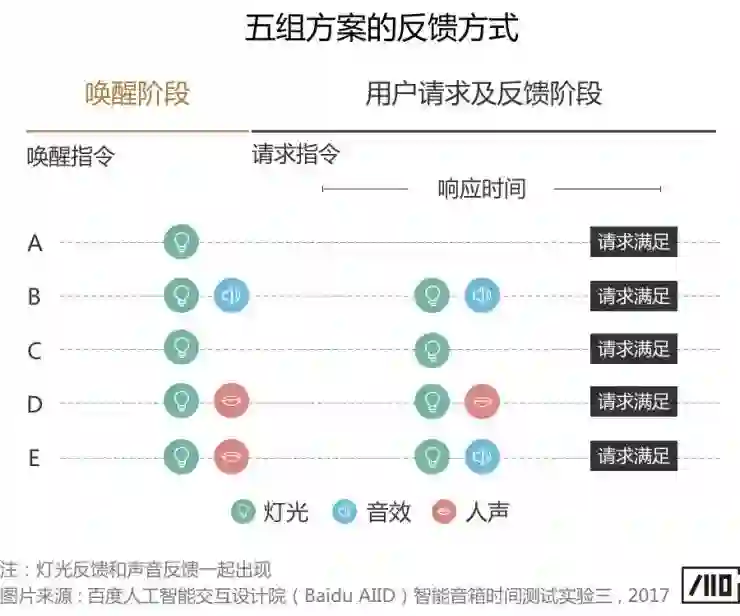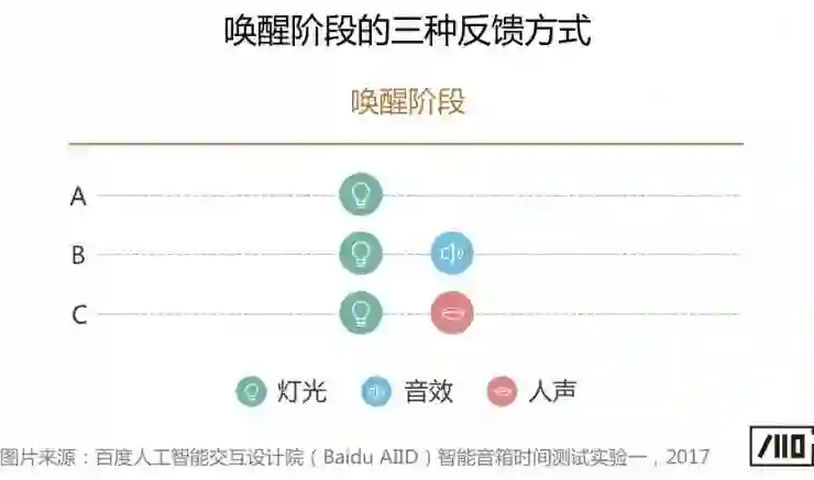 注意:本次实验设置了市面上主流的三种唤醒反馈方式:灯光、灯光+音效、灯光+人声,以给不同反馈情况的响应时间感受作参考,但对最优反馈方式,除了响应时间还受其他因素影响,将另着篇章探讨。