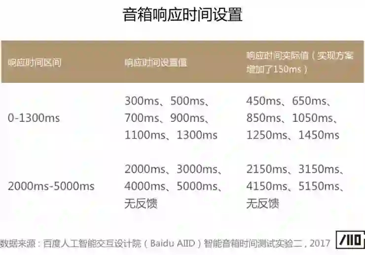 由于实验设定的条件和样本数量等限制因素,实验研究结论可能不能代表所有智能音箱用户在家居环境的全部感受,但希望通过我们的研究和探索,可以指导人工智能语音对话产品响应时间和反馈方式的设计,帮助打造自然和极致的语音对话体验。