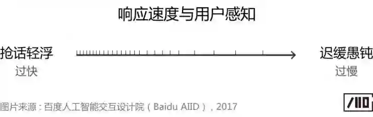 不同于基于视觉的交互,语音交互天然附带情感属性。然而,情感的体验是复杂的,它不只受效率这个单一变量的控制。大多数情况下,在生活中人与人对话时,一个过快的回答会给用户带来轻浮感和抢话感,而一个过慢的回答会给用户带来迟缓感和愚钝感。