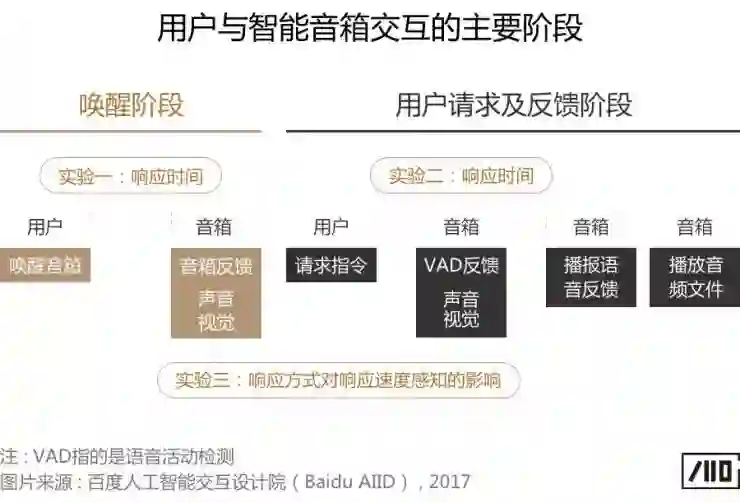 目前的智能音箱,主要采用先语音唤醒后输入指令的语音交互流程。鉴于此,我们可以将智能音箱的使用过程分为两个主要阶段: