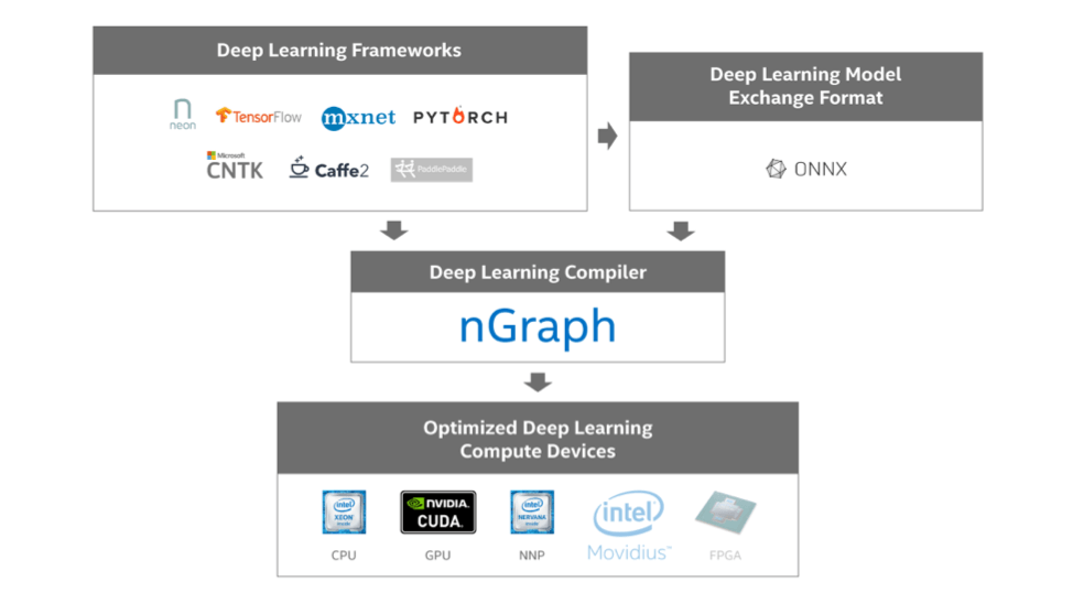 英特尔近期开源了深度学习框架编译器 nGraph。nGraph 是一款开源 C++ 库,编译器和运行器,它能够让数据科学家能够专注于数据科学研发,不需要担心如何将 DNN 模型部署到各种不同设备做高效训练和运行。