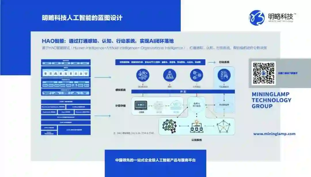 明略科技集合人类智能HI、机器智能AI、组织智能OI推出新一代理论“HAO智能”,通过构建“感知-认知-行动”的AI闭环推动技术落地。