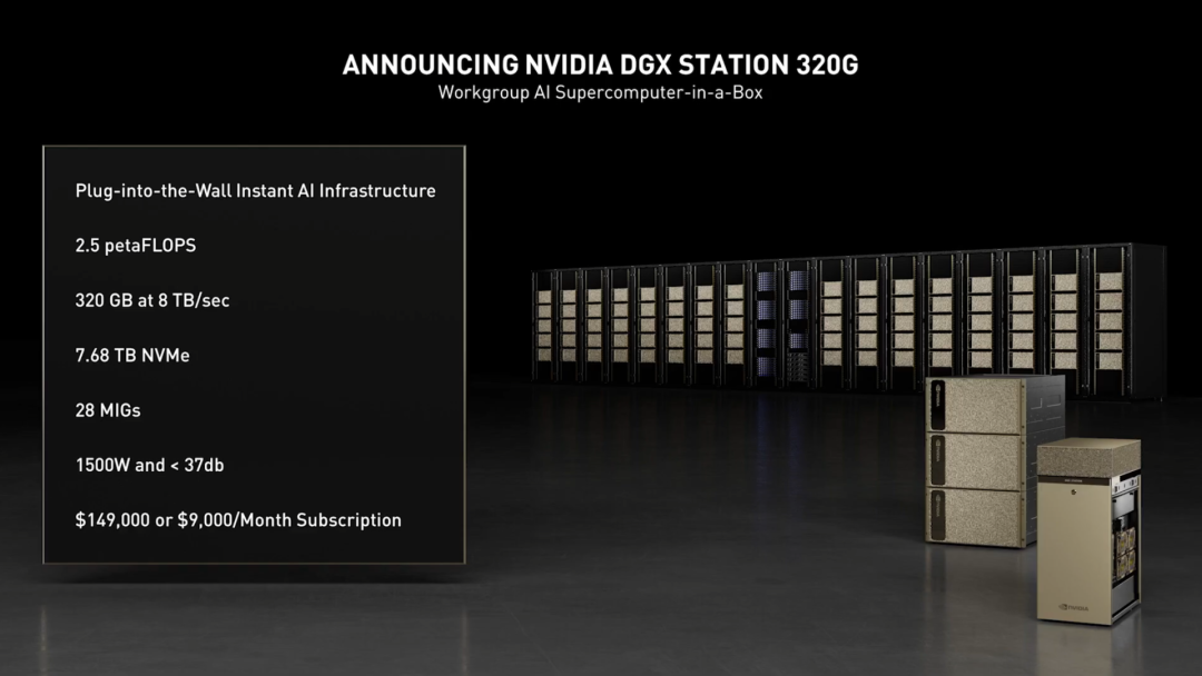 软硬件双管齐下,黄仁勋宣布升级NVIDIA专为工作组打造的「便携式AI数据中心」——NVIDIA DGX Station,以及NVIDIA专为密集型AI研发打造的AI数据中心产品——NVIDIA DGX SuperPod。