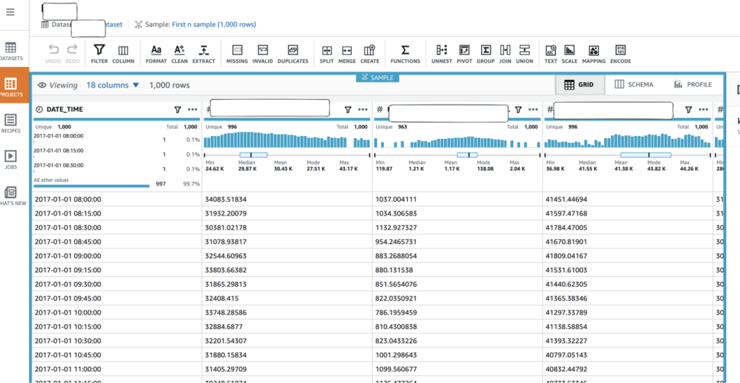 Data Brew 也是无代码数据准备工具。但这两种工具面向的是两类不同的受众。Data Wrangler 专门针对 ML,而 Data Brew 专注在通用探索性数据分析(EDA)上。另外,Data Brew 是一个以 UI 为中心的工具。