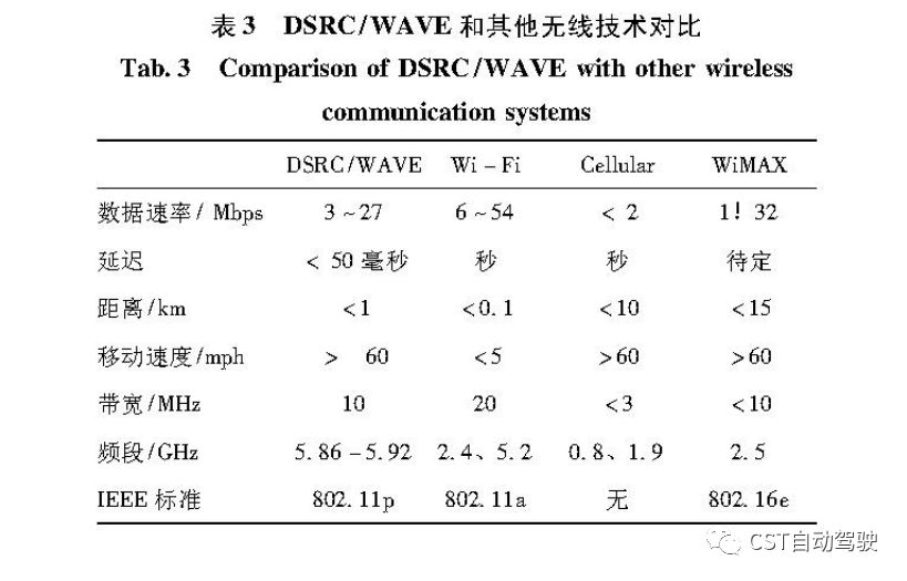 专用短程通信(DSRC) /车载环境下的无线接入(WAVE) 协议栈物理层标准为IEEE802.11p,该标准规定了MAC层和物理层的技术方案。802.11p标准已于2010年7月颁布,该标准将目标锁定在车载环境下的无线通信,主要用于车上用户与路边目标之间、汽车之间等的通信。IEEE1609 标准则是以IEEE802. 11p 通讯协定为基础的高层标准,于2008 或2009年成为正式使用的标准。