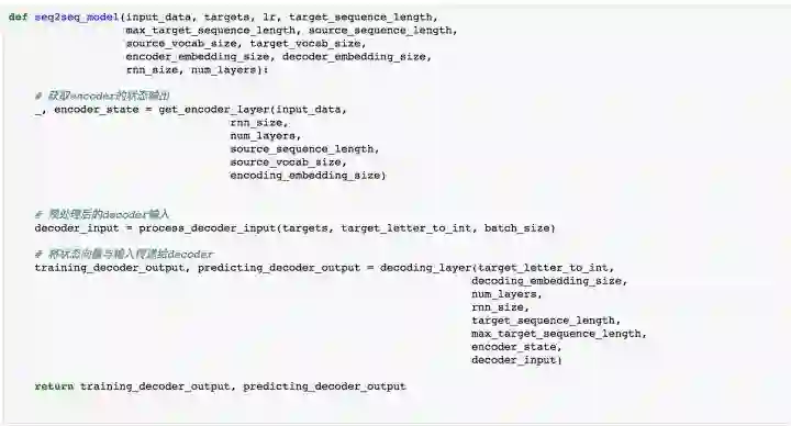 构建好了Encoder层与Decoder以后,我们需要将它们连接起来build我们的Seq2Seq模型。