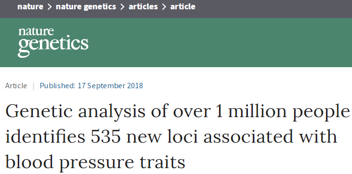 2)Genetic analysis of over 1 million people identifies 535 new loci associated with blood pressure traits