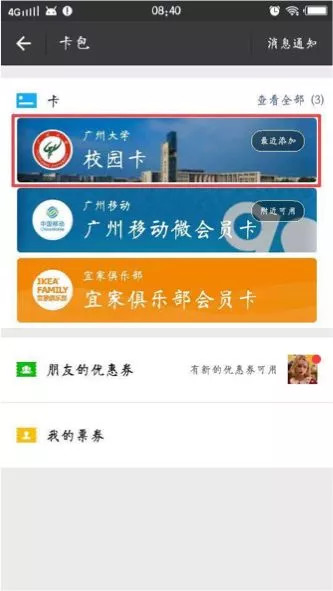 在微信卡包内识别绑定并领取了校园卡之后,你可能会用到这些功能: