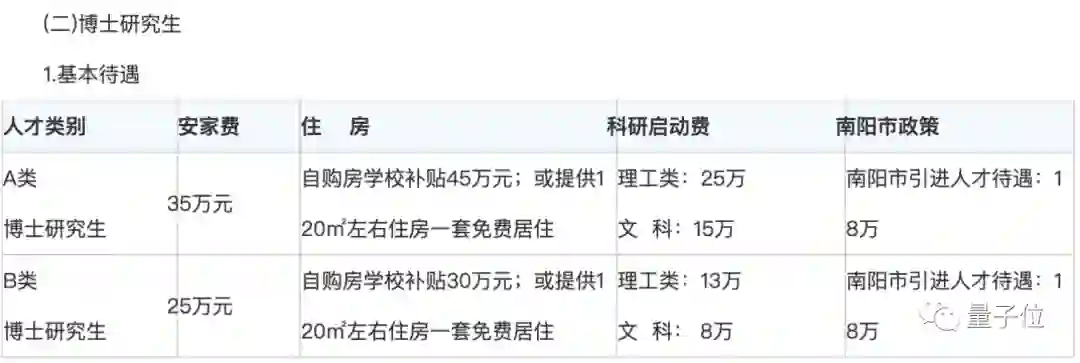 以南阳理工学院为例,A类人才的安家费和科研启动费分别有35万元和25万,文科还要再少一点;B类人才则只有25万元和13万元。