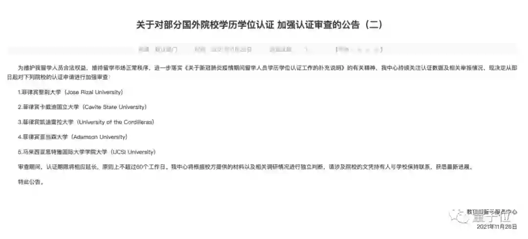 不仅如此,这所学校还曾经被教育部留学服务中心发布的公告点名,要求加强认证审查……