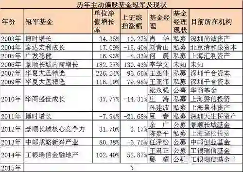 在经历了2003年的小幅上涨之后,2004年A股再度走牛,当年上证综指跌幅15.4%,股市跌入熊市深渊。私募工场:simugongchang,微信:guo5_guoguo。当年由刘青山管理的泰达宏利成长基金取得17.09%的单位净值涨幅,成为偏股基金冠军得主。