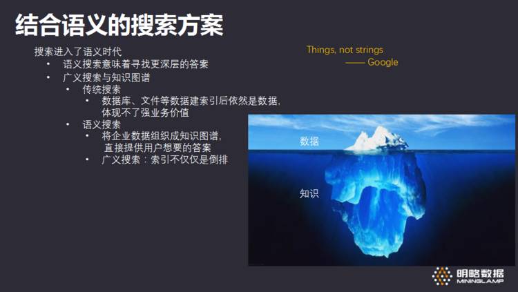 大家都知道,现在已经是语义的时代,Google 在推出知识图谱搜索的时候有一句话“Things, not strings ”,意思是我们要寻找数据深层的含义,寻找更深层的答案。